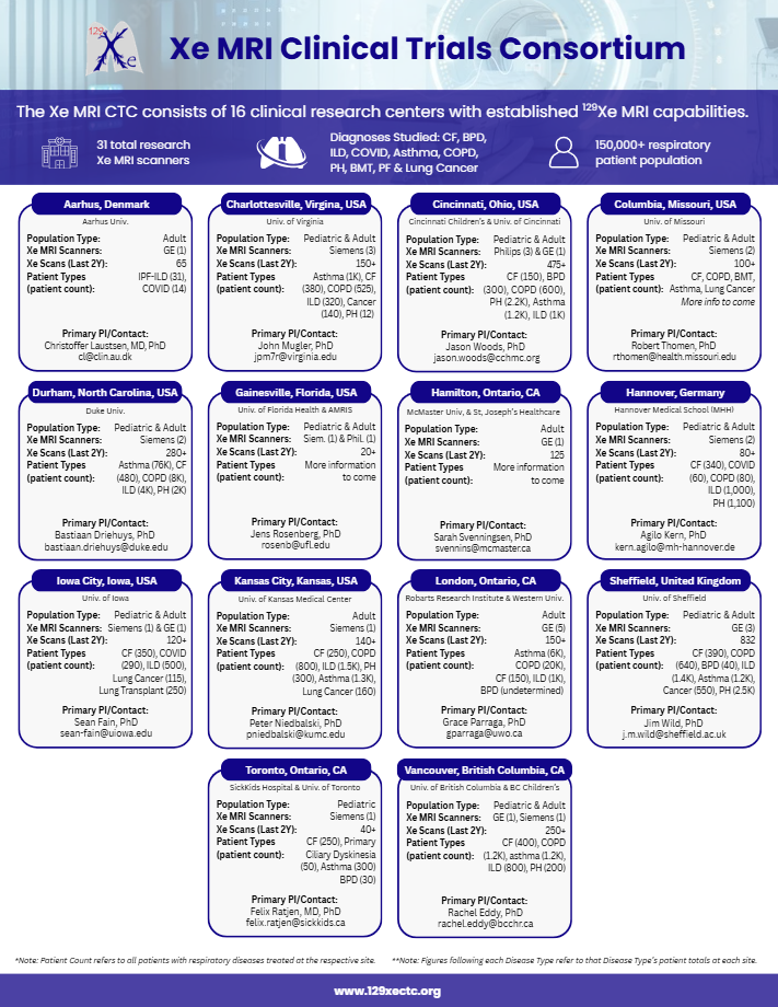Please download a PDF copy of the Consortium one-pager by clicking the link below. This one-pager should be used when communicating with industry sponsors, who are considering sites for multi-site clinical trials. This document includes information about each site’s patient population, imaging hardware, imaging history, and contact information.